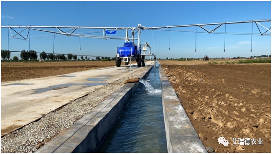 艾瑞德设计生产的平移式水肥一体化是在平移式喷灌机上配套专用的泵注式施肥装置,由储肥桶、搅拌器、泵流量率定管、柱塞泵、注射喷嘴、防虹吸回流装置以及连接附件等组成。该施肥装置依靠电力驱动的注肥泵提供动力,抽取储肥桶中搅拌均匀的肥液,通过注射喷嘴将肥液均匀地注入到喷灌机的输水管内,与灌溉水混合稀释后由悬挂的低压喷头喷洒。该设备深受国内种植公司、科研院所、种业公司等用户好评,目前在山东、河南、安徽、河北、山西等地区广泛使用。