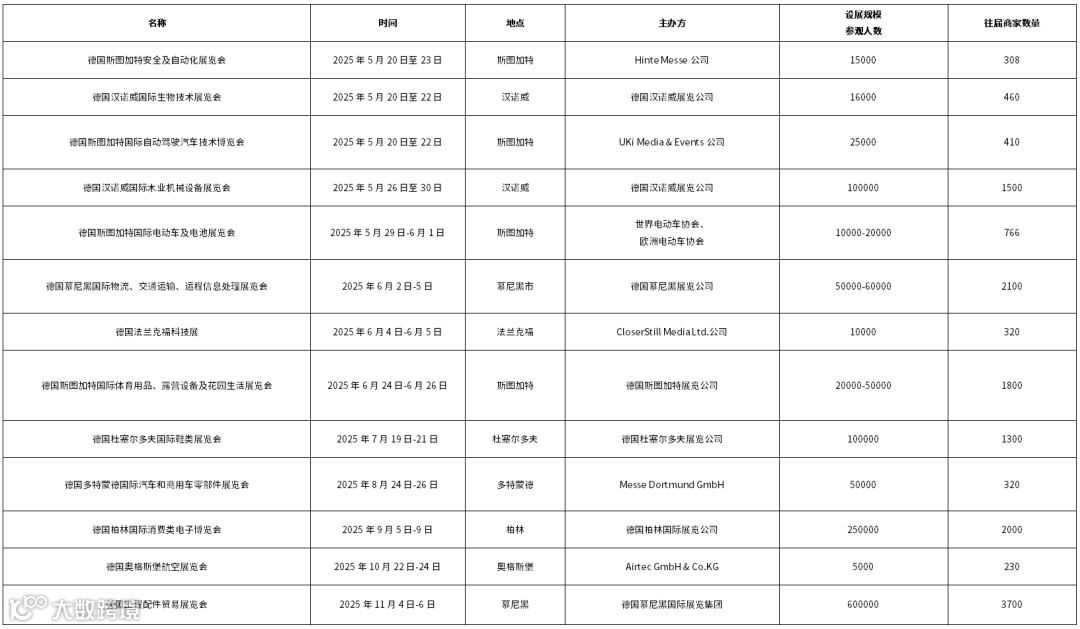 表1 2025年德国拟举办的展会