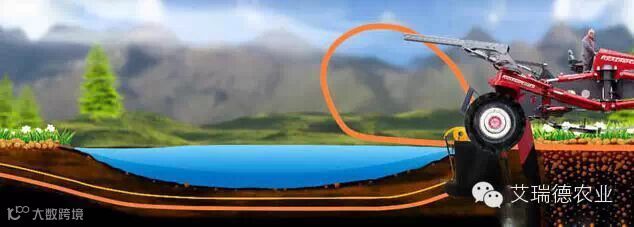 既然蜘蛛犁开沟机骨骼清奇,轮子可以分别运动,可以踮着脚跨越路边栏杆作业,过个小水塘什么的完全不在话下。
