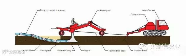 工作时需要一到两台貌似挖掘机的机器在前面开路,管道开沟机在后面边挖边铺设管道。