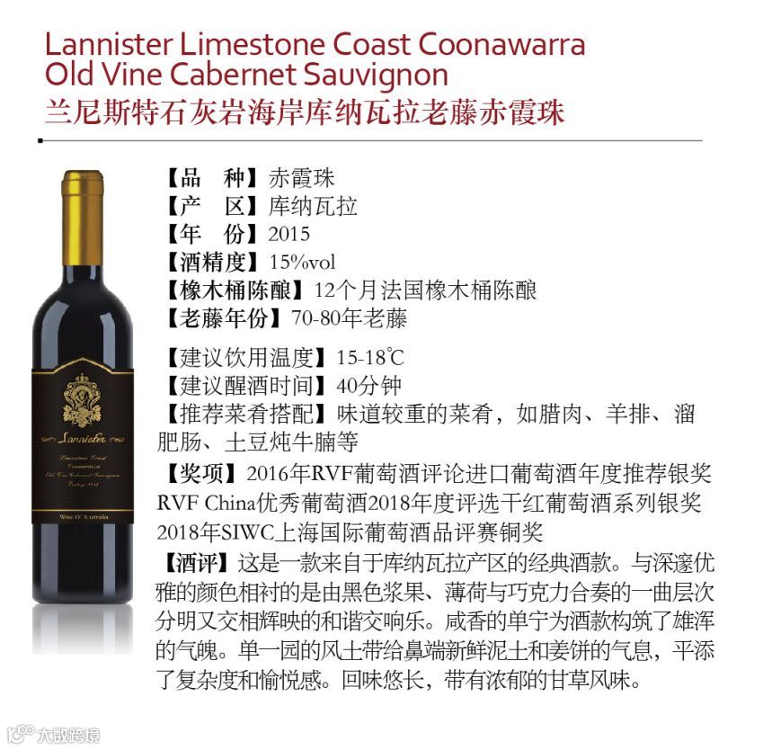 品鉴期间不少宾客反应,试饮的2015兰尼斯特库纳瓦拉赤霞珠入口时有些酸涩和“凶猛“,然而随着酒液与空气的不断接触,醒开后的酒液颇有种拨开云雾见青天之感,成熟饱满的酒体和赤霞珠对味蕾的有力冲击,征服了在座的一众酒友们。
