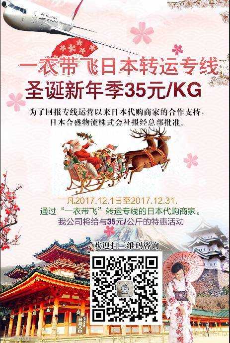 为了回报专线运营以来日本代购商家的合作支持。日本合盛物流株式会社报经总部批准。特推出圣诞新年季特惠活动: