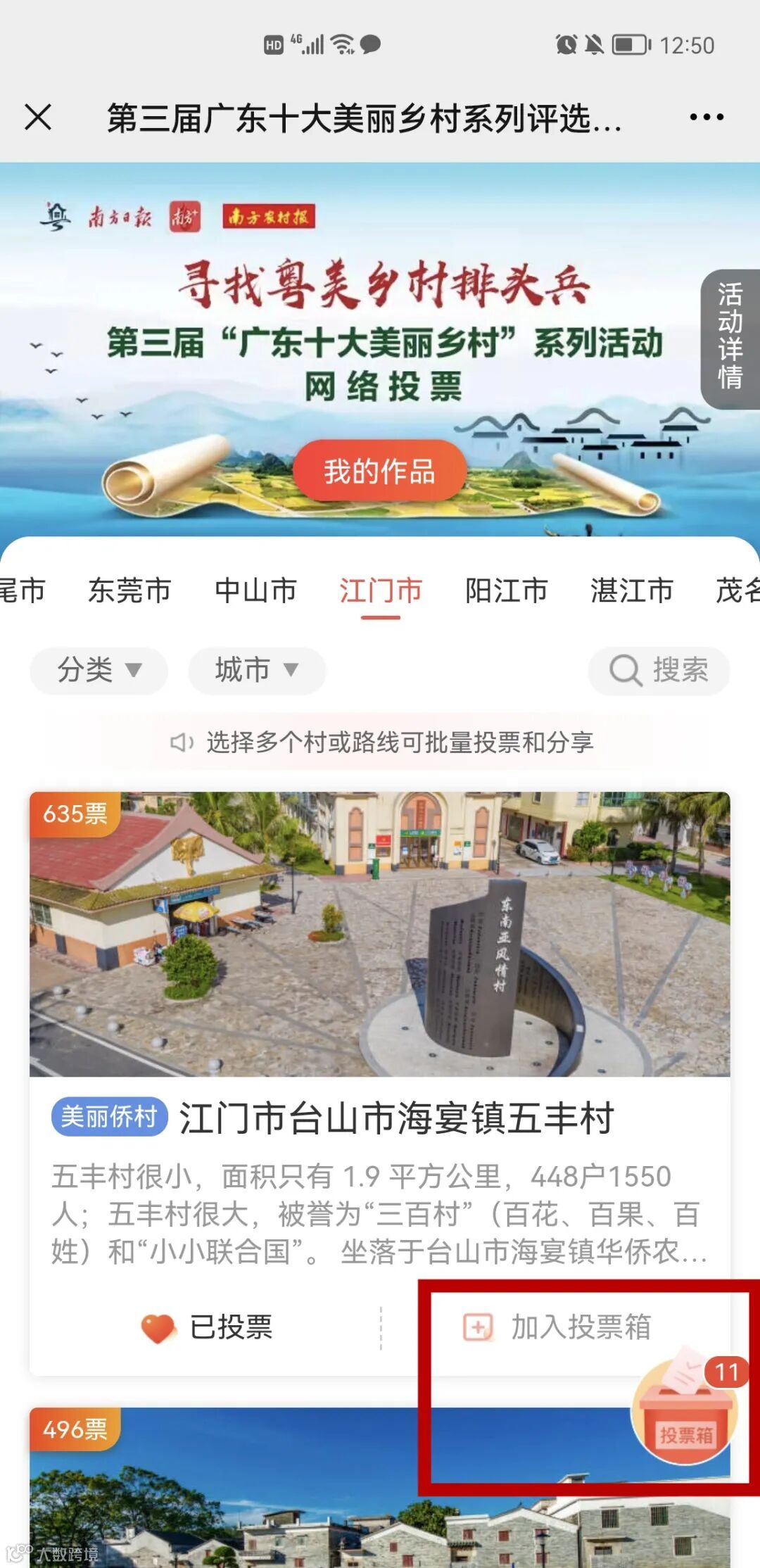 即可为江门所有参选项进行投票