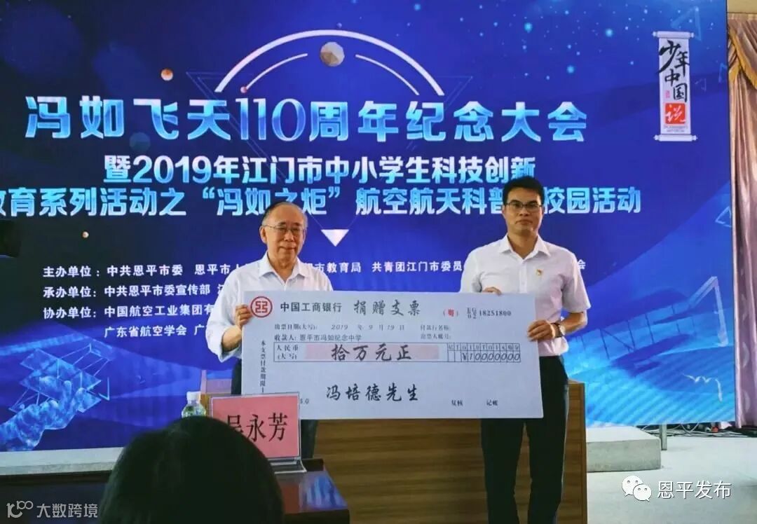 △冯培德院士向冯如纪念中学捐赠航空科教奖励基金