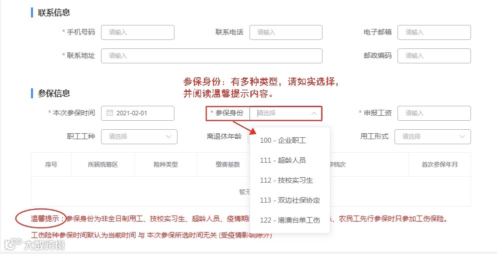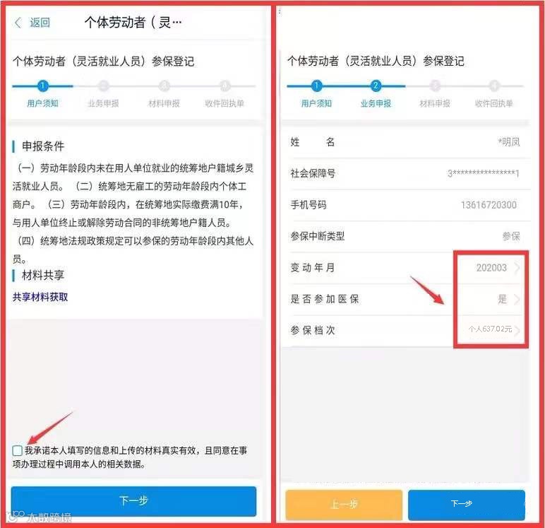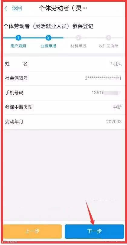 情形一:若当前参保人为社保中断状态,则将进入“灵活就业人员参保”的业务申报页面,按实填报各项参保信息即可完成参保业务办理。