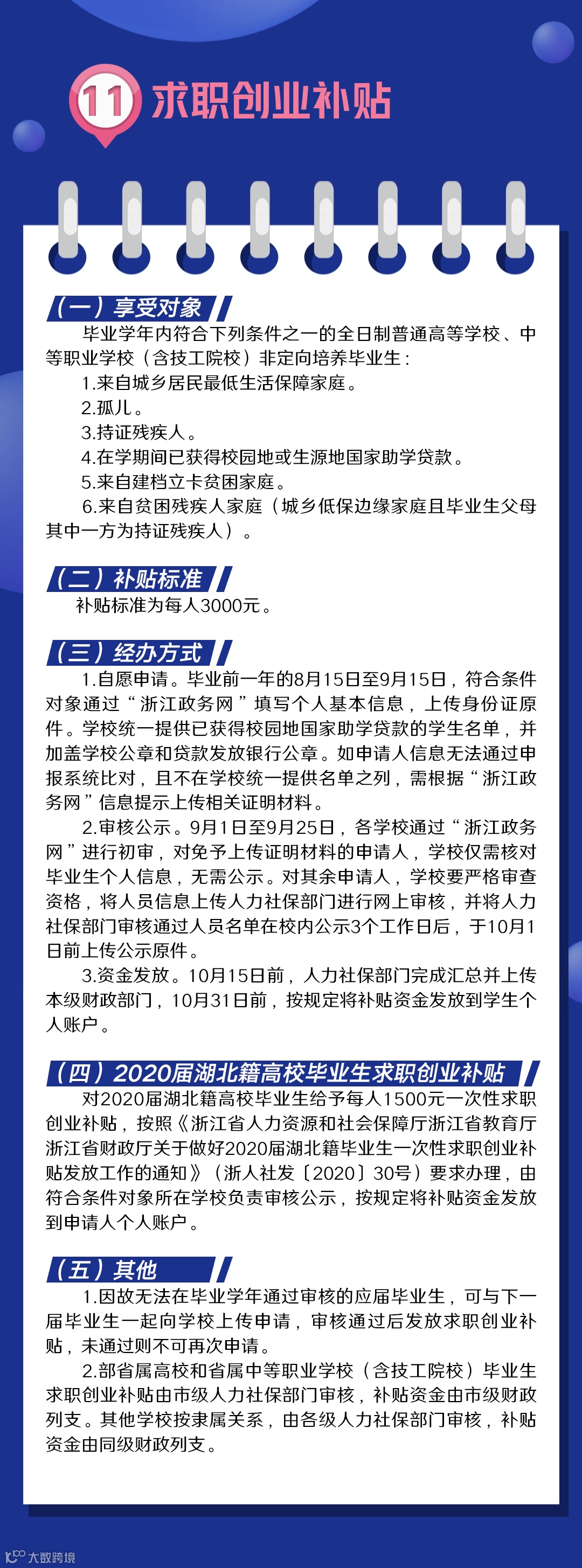 《实施细则》重点明确了13项就业创业有关政策的经办要求,即:创业者社会保险补贴(一次性创业社保补贴)、创业带动就业补贴、创业场租补贴、中小微企业吸纳就业贷款贴息、用人单位吸纳就业社会保险补贴、中小微企业吸纳高校毕业生一次性就业补贴、高校毕业生从事基层公共服务岗位补贴、就业见习补贴、高校毕业生就业补贴、灵活就业社会保险补贴、求职创业补贴、高技能人才生活安居补助、中小微企业“稳就业白名单”信贷支持等。其中,中小微企业吸纳高校毕业生一次性就业补贴(仅2020年实行)、就业见习补贴(原来政策有但无操作细则)、高技能人才生活安居补助、中小微企业“稳就业白名单”信贷支持等4项为新增政策,创业者社会保险补贴、创业带动就业补贴、创业场租补贴等3项政策调整了对象、标准等。其余6项政策在原政策基础上进行了完善。