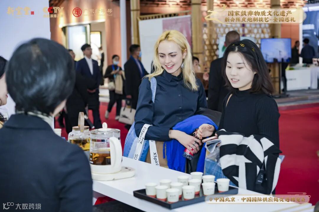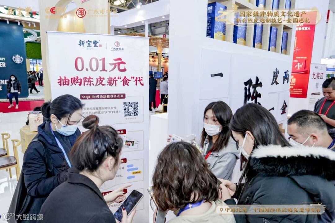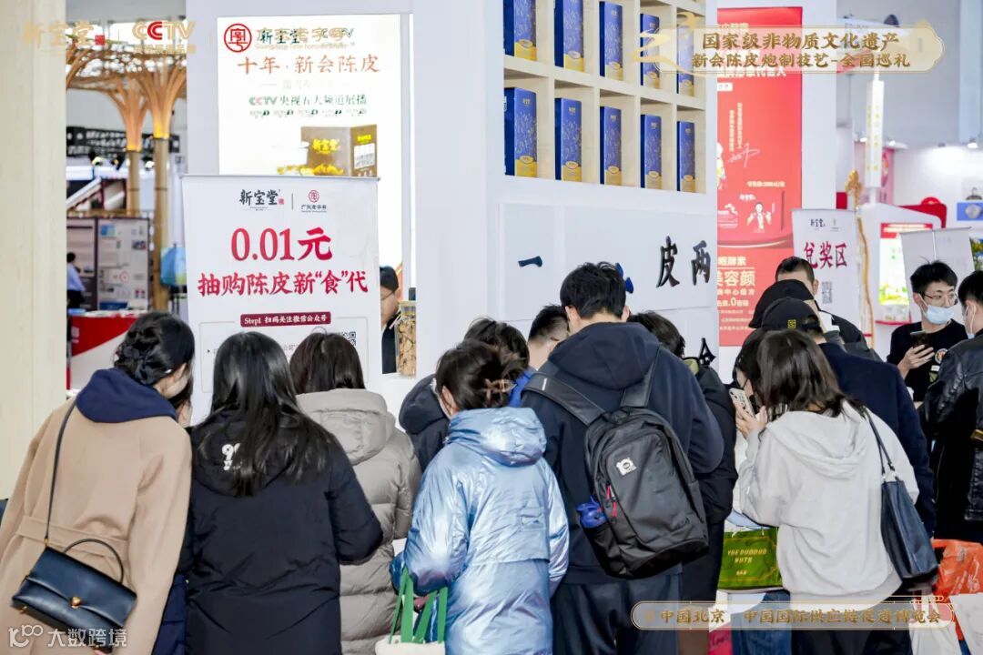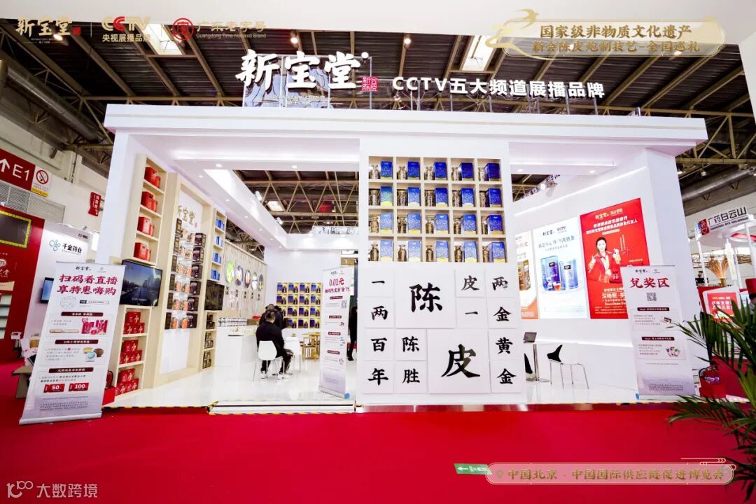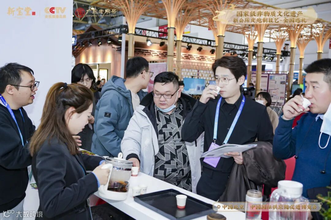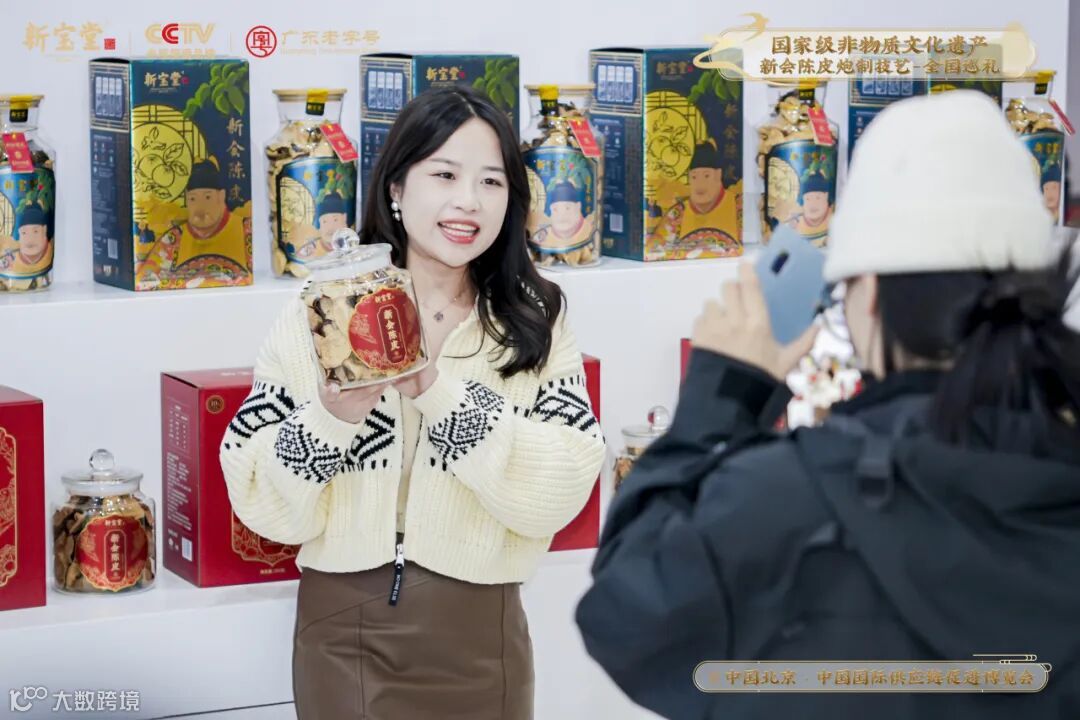 新宝堂展区现场以「国家级非物质文化遗产新会陈皮炮制技艺全国巡礼·北京站」为活动主题,诚意邀约中外各国的朋友们进入展区,品鉴新会陈皮的独特魅力及陈香口感。