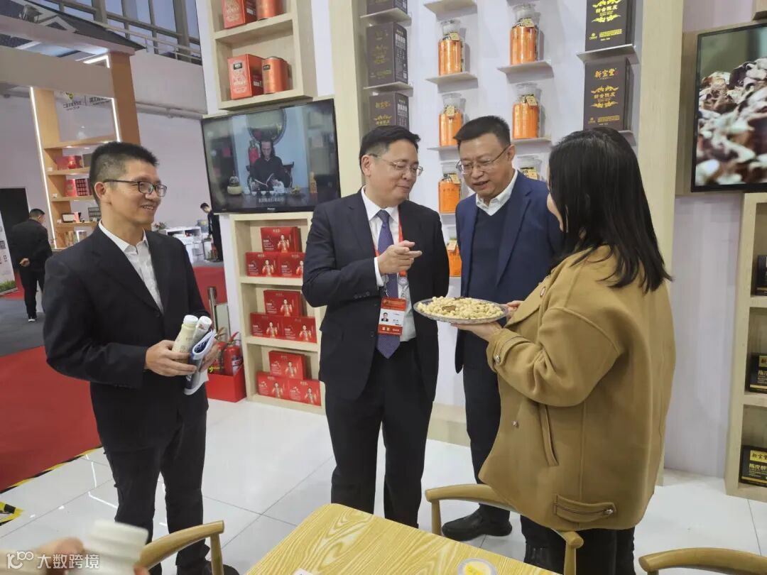 △中共江门市委副秘书长贺雪光,江门市商务局局长兼市贸促会会长冯一宁等一行人莅临新宝堂新会陈皮展区指导