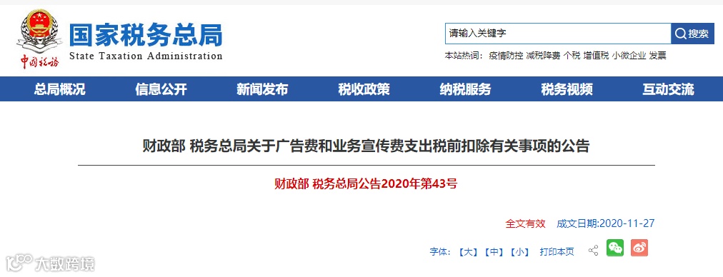 财政部 税务总局公告2020年第43号