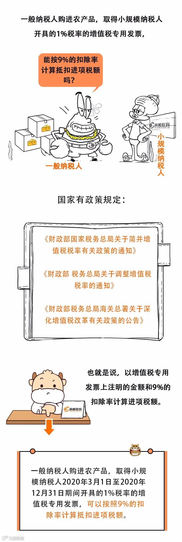 确定!12月31日前,小规模纳税人开具1%农产品增值税专用发票能计算抵扣9%的进项税!