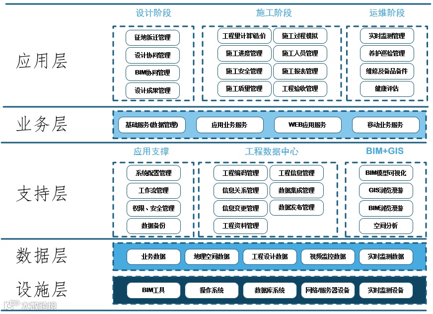 三是BIM+GIS平台数据的容量的问题:基础设施建设和城市级别的BIM+GIS平台,在规划设计阶段数据的容量就很大,到了建设和运维阶段,各种复杂数据的进入,数据呈现几何级别增加,这同时还考验平台的承受能力。