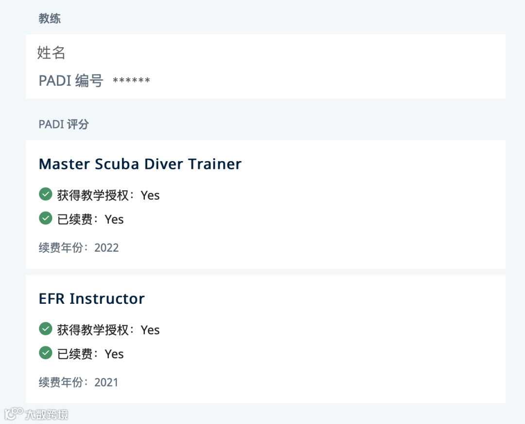 PADI 教练资格查询(Pro Chek) 是一个用于验证 PADI 专业会员身份状态的工具,适用于所有人。