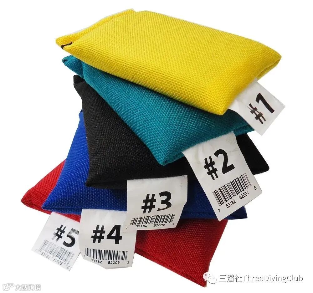 沙袋形式的软配重也由铅制成,以颗粒或珠子的形式装在沙包里,根据形式的不同软配重可以弯曲、塑形,相对来说更舒服。软配重的一个缺点是,不能绑到标准的配重带上,只能用于专用的袋式配重带。软配重并不主流,很难在度假村借到。