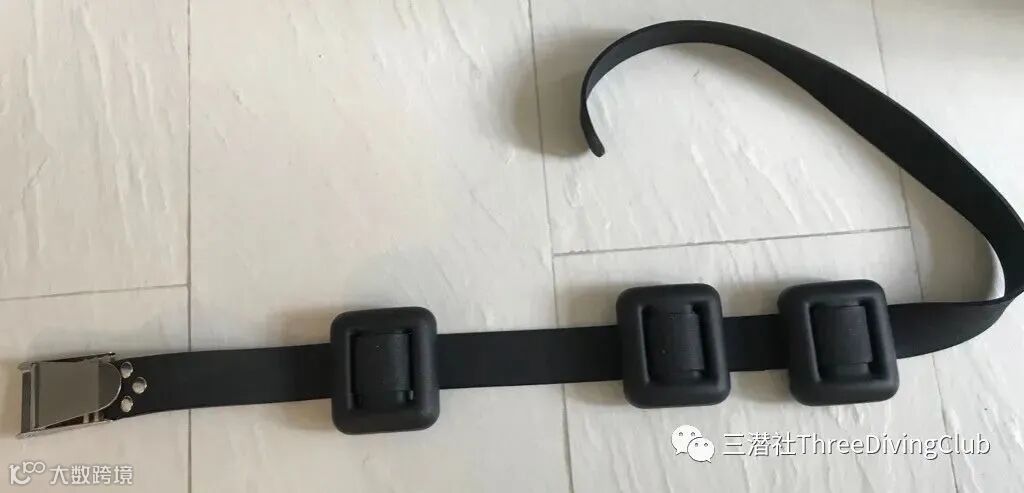 使用配重带串配重时请确保正确地做法,目的是保证配重均匀地绑在潜水员的外侧。