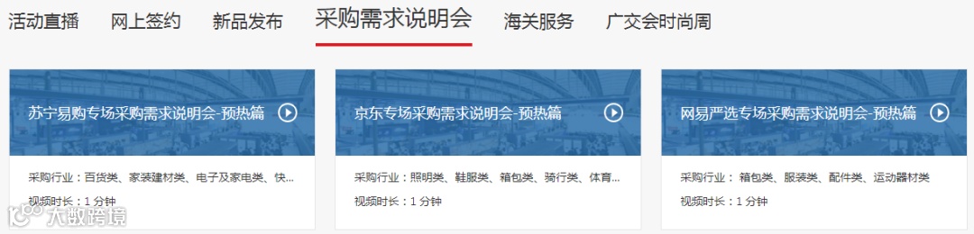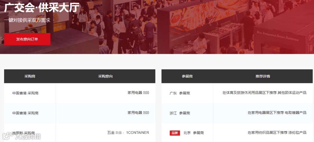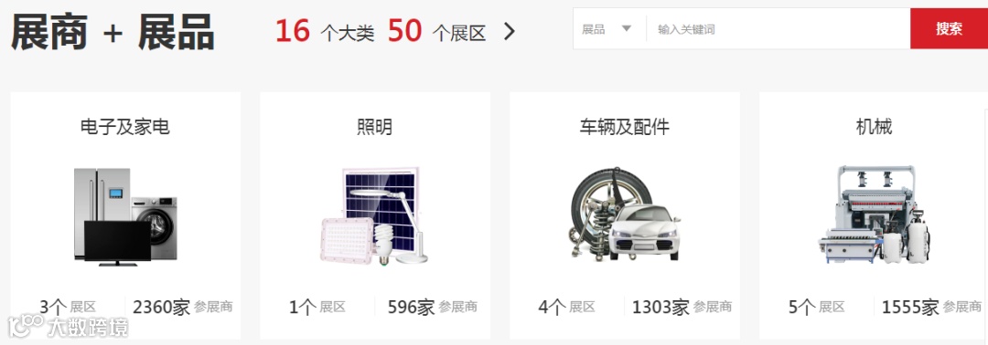 广交会官网设有展商展品、新闻与活动、全球供采对接、大会服务、跨境电商专区五大板块内容。