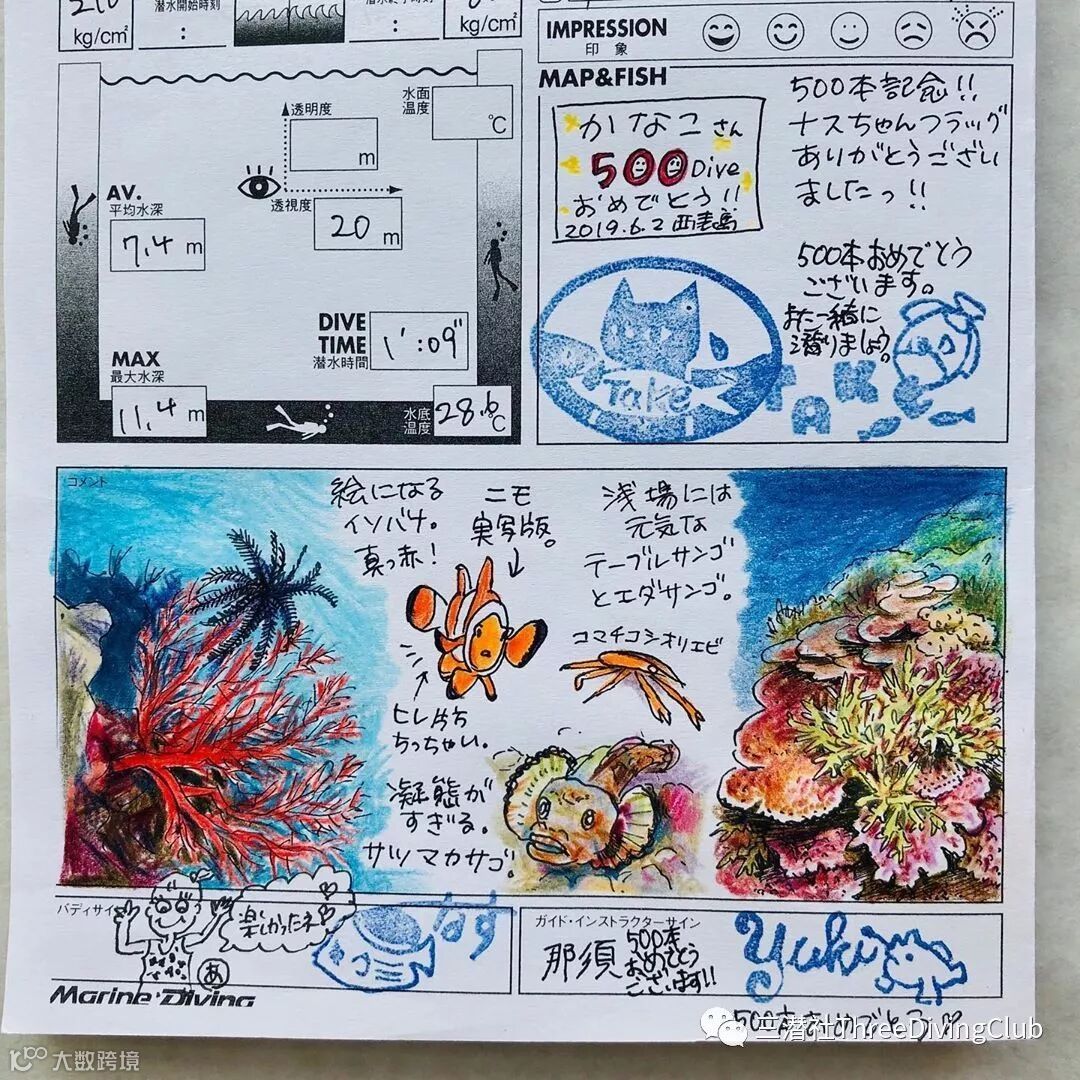去了哪,潜点叫什么,除了潜水电脑的侧面图和几张相机里的照片,半年一过可能没有任何回忆,用好你的潜水日志,详尽的记录后找潜店或潜船盖章,在这个连过海关都是电子通行的年代里,形成一份属于自己的劳作,别人怎么说不要紧,我明白在做的事会让自己专业。