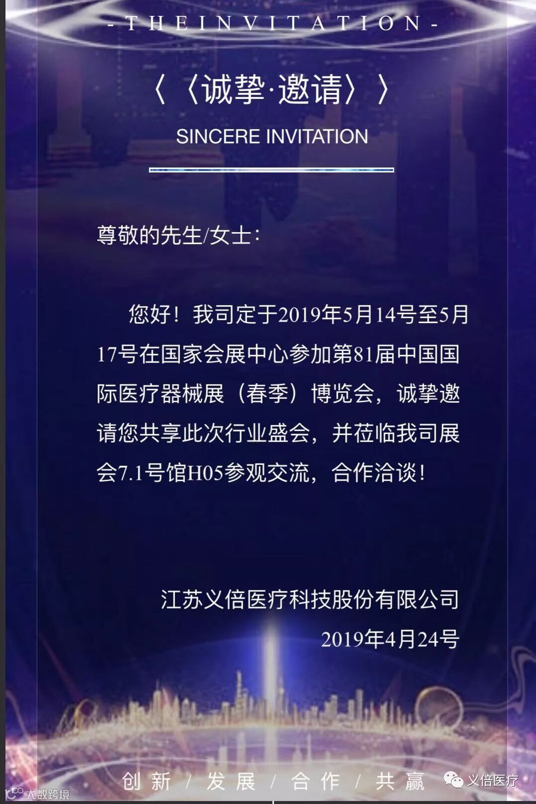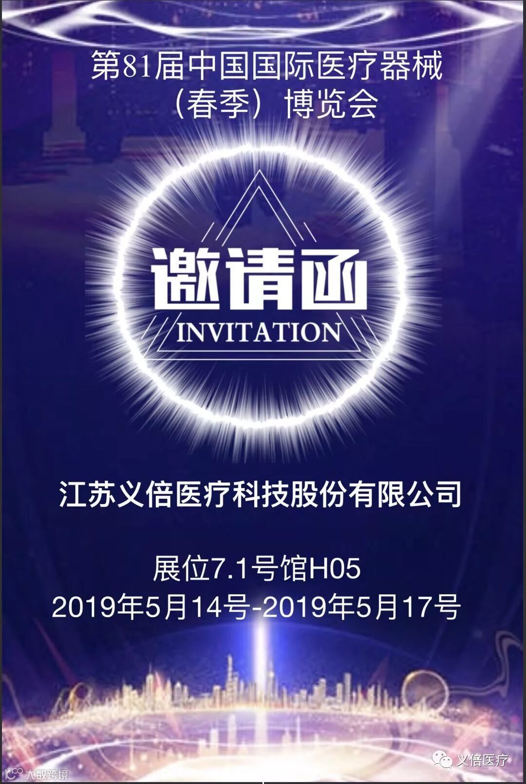 盛大举办。医疗盛世,万众瞩目。义倍医疗将携最新产品盛装亮相。精彩纷呈,大有可观!展位号7.1号馆H05,恭候您的到来!