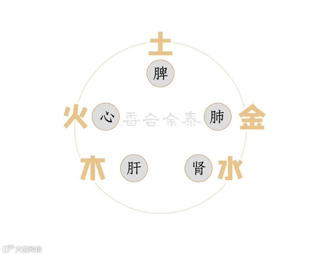 肺金将空气吸入体内,是为气的收缩,肝木将空气呼出体外,是为气的扩张,心火将凝结之气能加热使之上升,上升能助气的扩张,肾水将气凝结使之下降,下降能助肺金气的收缩。上升不能太快,下降亦不能太快,收缩不能太快,扩张亦不能太快,是为气的稳定,即脾土的作用。