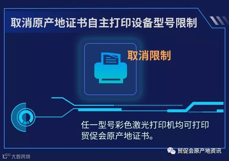 取消原产地证书自主打印设备型号限制,任一型号彩色激光打印机均可打印贸促会原产地证书,有利于更多企业享受贸促会原产地证书自主打印服务和进一步降低企业成本。
