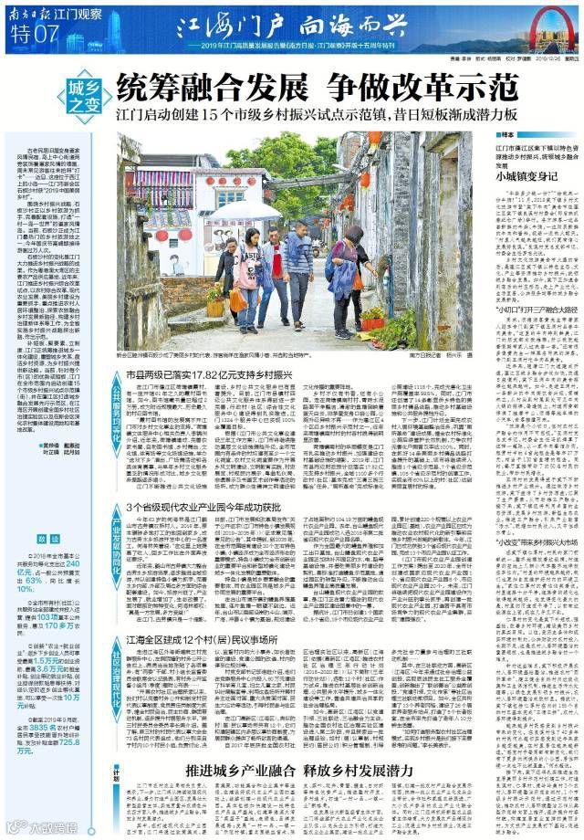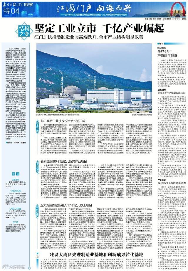 2019年,是五邑侨乡发展新征程上的关键一年。江门牢牢扭住大湾区建设的“纲”,按照“两个定位”的要求,举全市之力投入大湾区建设,不断迈向高质量发展。