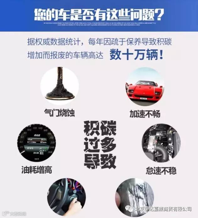 ③ 专门解决汽车发动机因“积碳”而导致的“发动机发抖、冷启动困难、行驶无力、敲缸、故障灯报警、燃油油耗增加、机油消耗量增大、尾气排放超标”等故障问题;