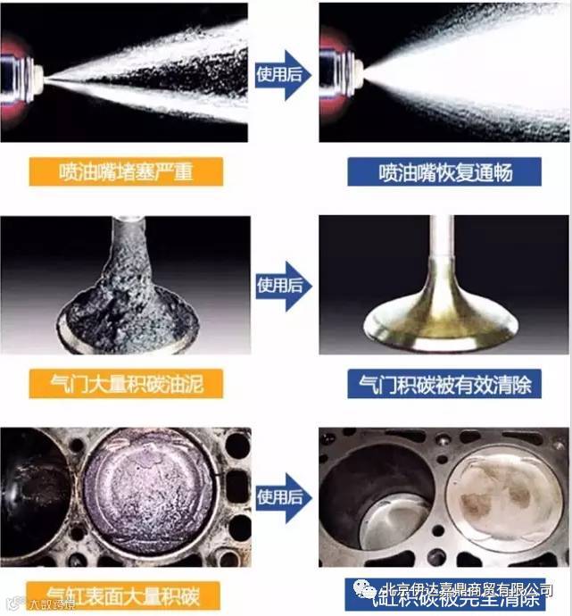 ① 有效清除发动机进气阀、燃烧室、活塞环等部位的积碳;