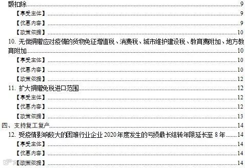 12.受疫情影响较大的困难行业企业2020年度发生的亏损最长结转年限延长至8年。