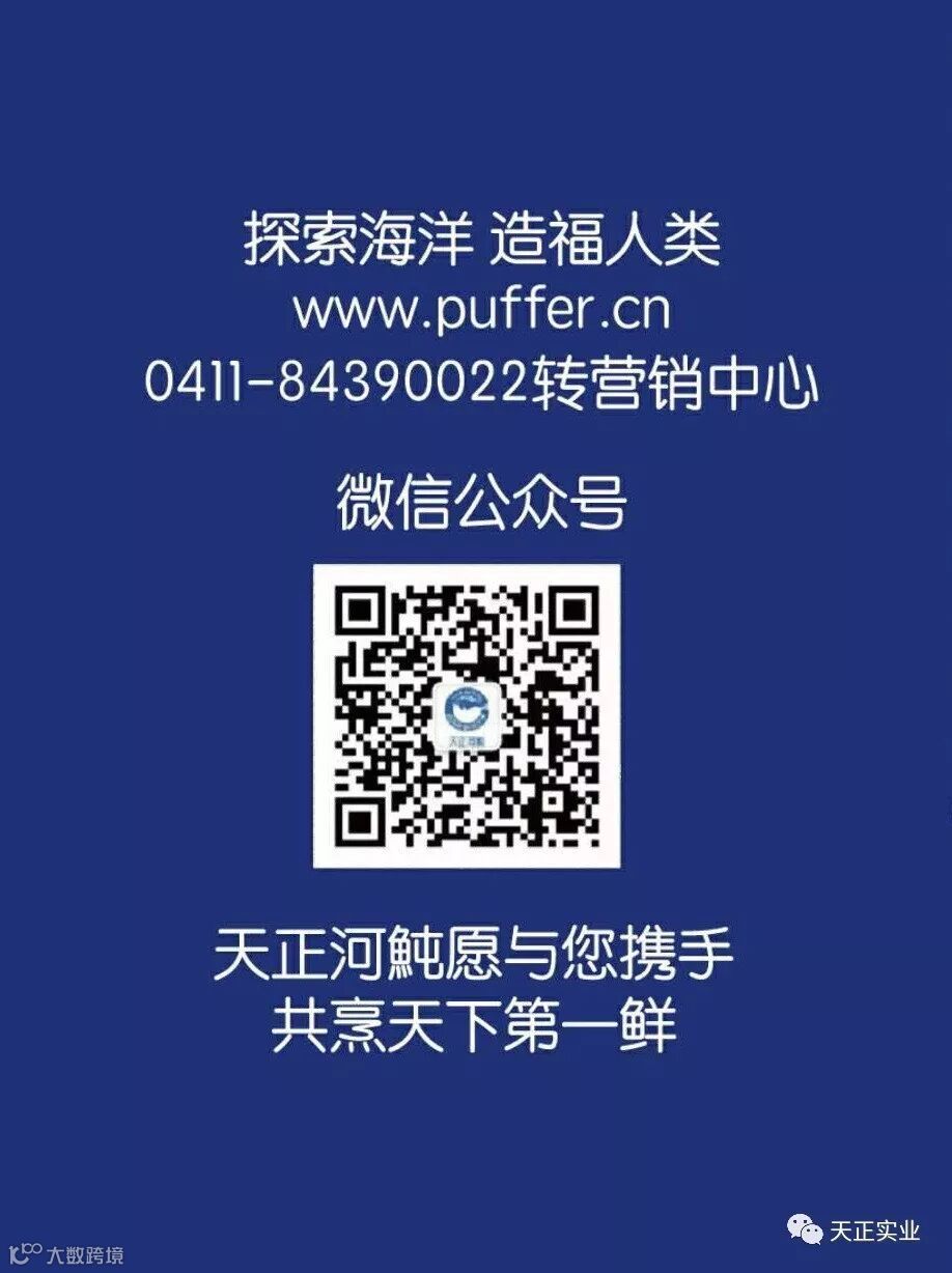 天正集团二十多年来出口日本优质河豚鱼——红鳍东方鲀,是日本消费养殖河豚鱼的主要供应商,每年出口日本的鲜、冻、活河豚鱼近千吨,占据着日本消费河豚鱼市场的60%份额。天正河鲀以优越的品质获得全日本河鲀联盟评为“安全、安心、健康”产品,二十年来在下关免检。天正集团长期以来与日本下关建立了紧密的合作伙伴关系,二十年间先后多次举办中日河豚文化交流研讨会,有力地推动了中日双方河鲀产业的文化交流与合作。
