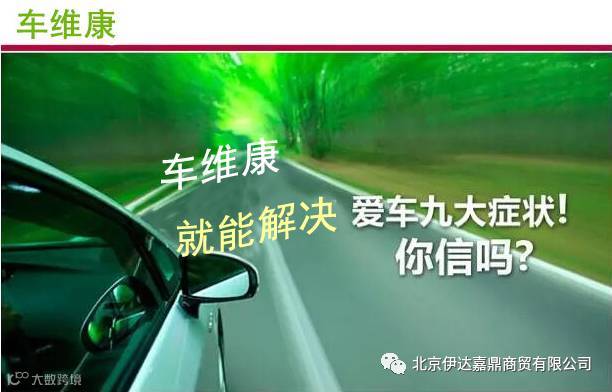 车维康是北京伊达嘉鼎商贸有限公司研发的一款汽车保养清洗产品,北京伊达嘉鼎商贸有限公司有多种汽车清洗剂,燃油清洗剂,进气清洗剂,三元催化清洗剂,润滑清洗保护剂,刹车保护剂,燃烧室清洗剂,水箱清洗剂保护剂,空凋清洗剂等总计45种养护产品。品牌立足于北京。行销各个地区,其中车维康品牌与众多连锁店正在合作,以及4S店,汽修厂,汽车美容装饰店等。诚信经营,精益求精,快速准确的为顾客服务。