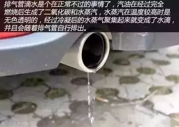 汽车燃烧的时候,排气管会有水流出,也可以这么说,汽车燃烧的越充分排气管淌的水越多。