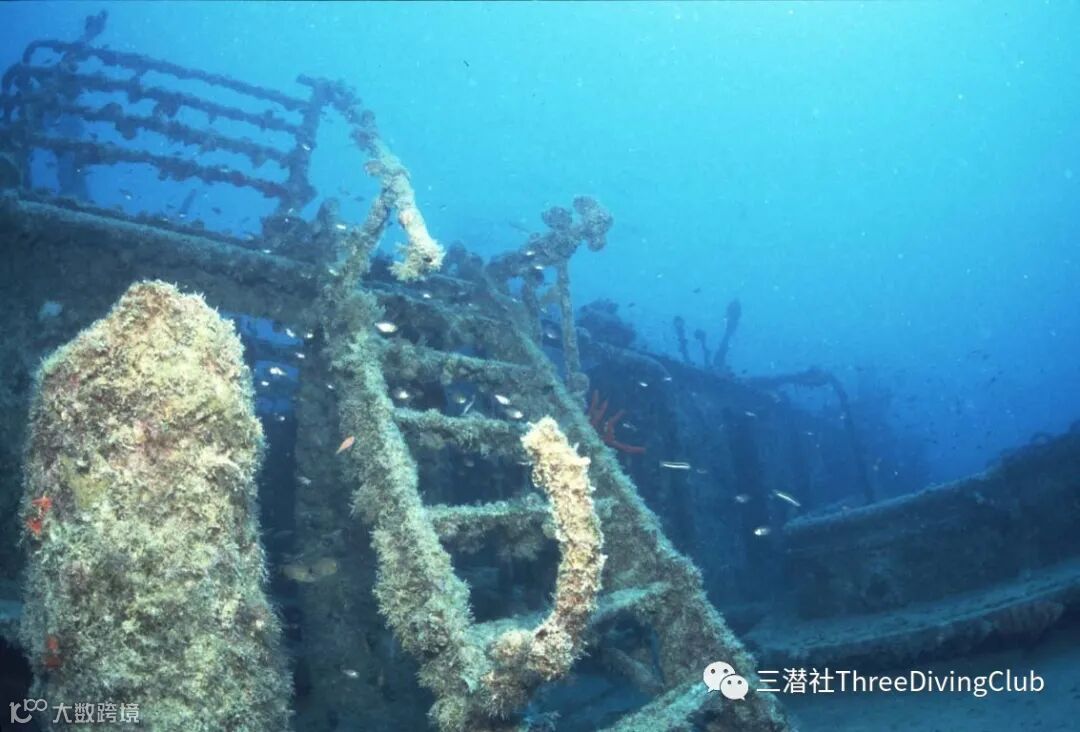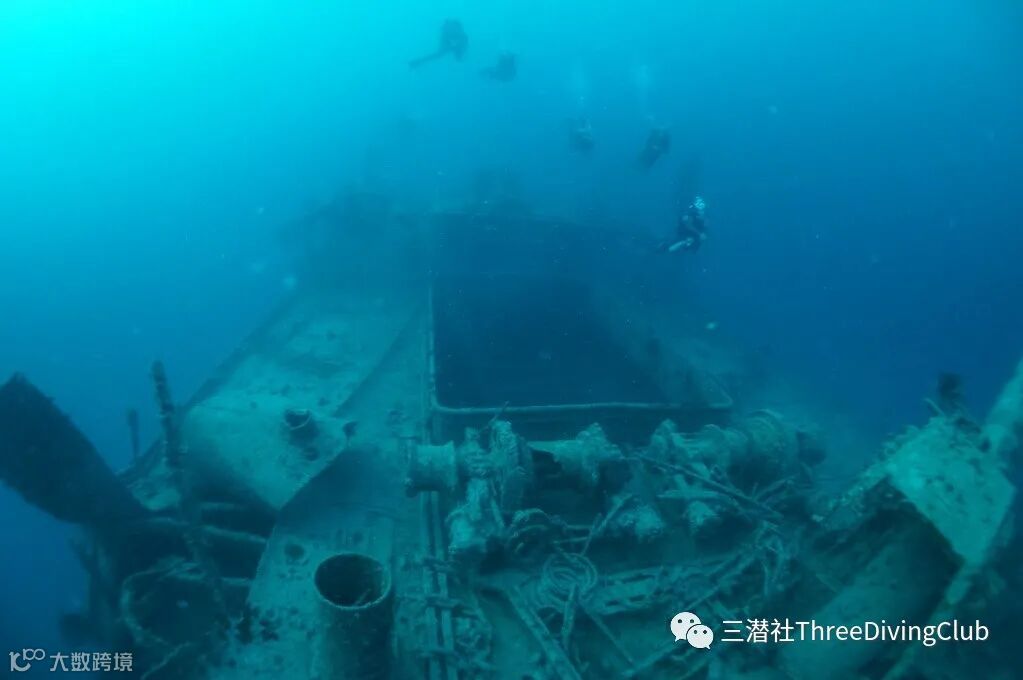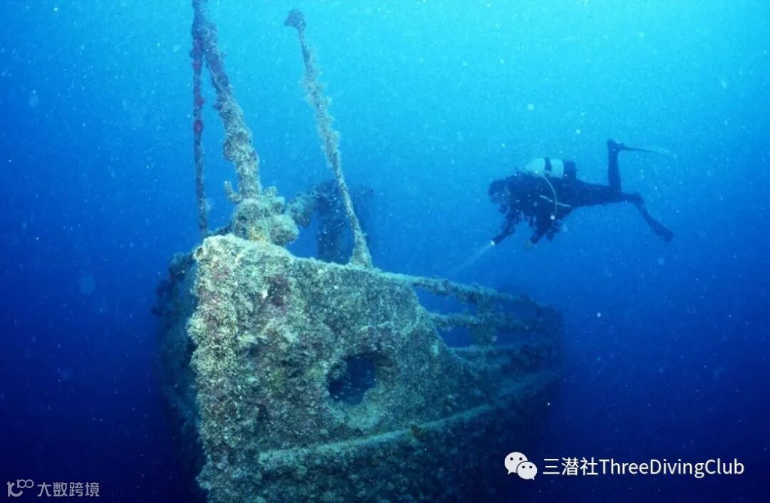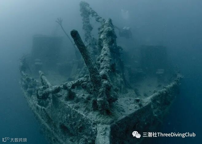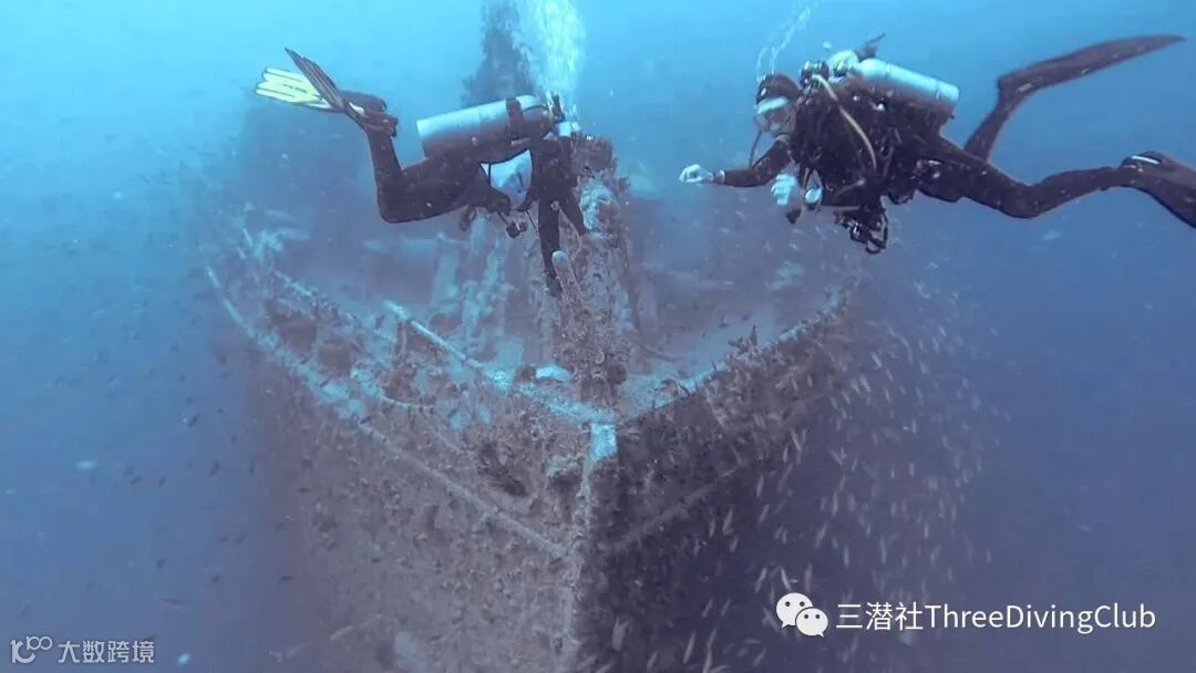 在潜水船上颠簸了10分钟后,团队从沉船上方潜了下去。其中一名潜导在沉船上系了一个SMB,用做参考线。团队重新集结,游到船尾,停在30米至34米之间。C临时游下去,快速地看了看船的螺旋桨,然后就和团队重新汇合。