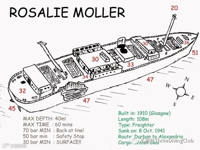 简报非常专业,潜导强调这是一次深潜。需要密切计划并监测潜水参数。经验不足的潜水员应保持在免减压极限(NDL)内潜水,有资格做减压潜水的潜水员根据潜水电脑的指示不应超过15分钟的上升时间(文中直译),开始上升时气瓶压力应大于80巴。所有人都使用28%高氧(Nitrox28)。每个小组都要在他们的安全停留期间部署一个SMB,向潜船显示在哪里接他们。