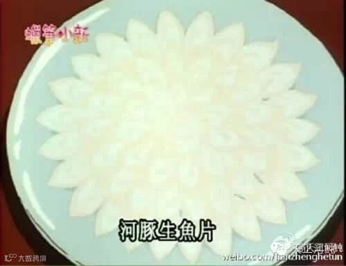小新在品尝“河鲀生鱼片”时,见生鱼片切得极薄,便吐槽厨师真小气!呃...小新童鞋,你真是外行呢!河鲀生鱼片的切割最考验料理师的刀工,讲求薄如蝉翼晶莹剔透,乃“厨刀上的艺术”。