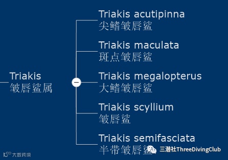 大鳍皱唇鲨(Triakis megalopterus)以蟹类为生,分布于南非,体长可达1.7米,近危动物。
