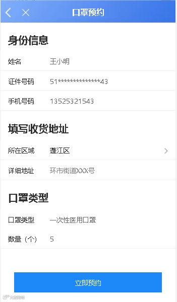 3.完成健康自查资料上报后,即可填报口罩预约相关内容。