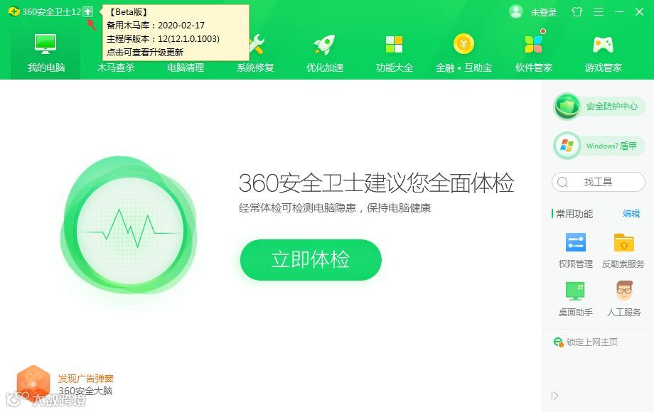 安装完成后,打开360安全卫士12,