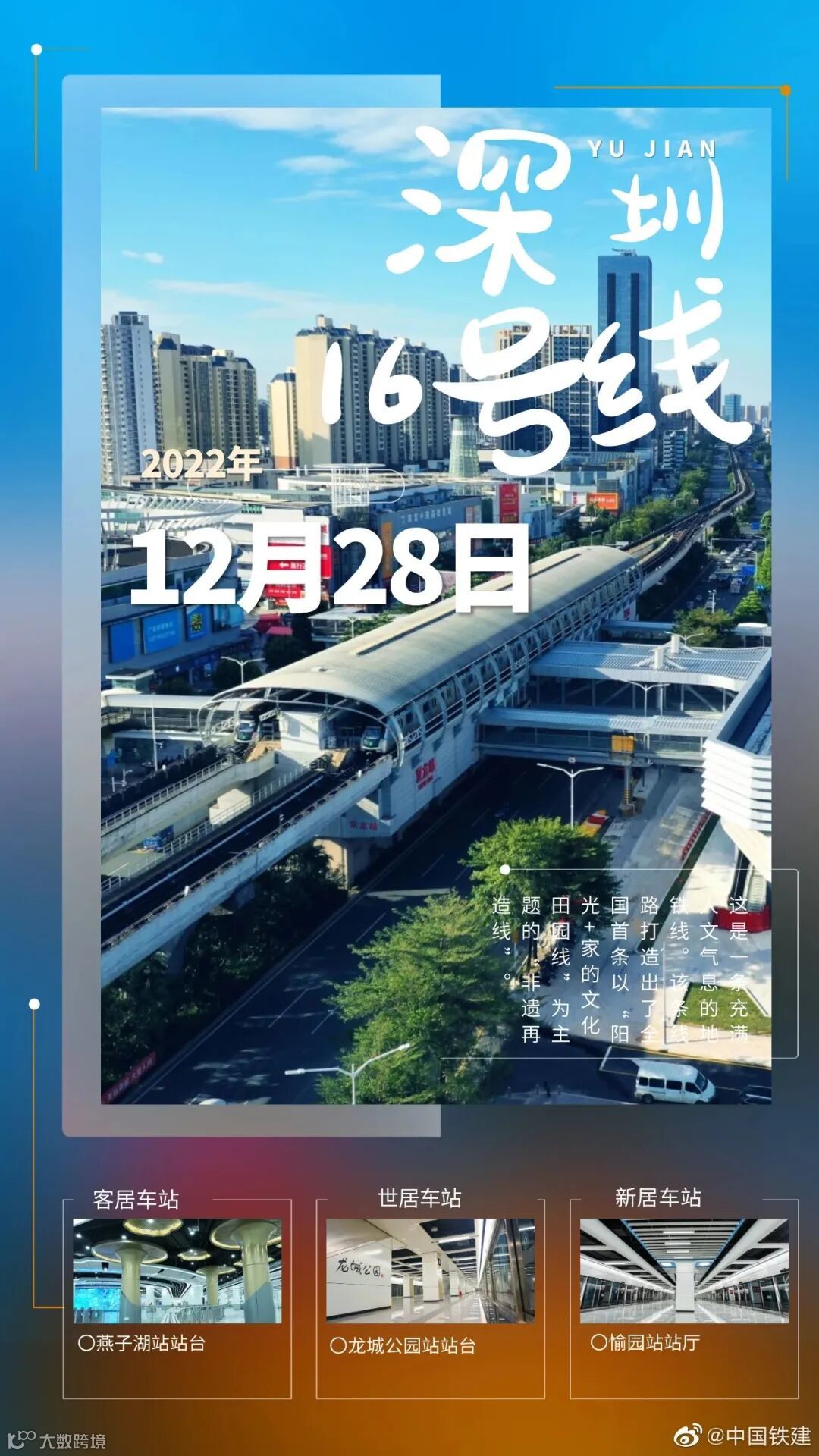 今年是深圳城市轨道交通新线开通的“大年”,开通的线路数为历年最多,共5条达128公里。随着深圳地铁16号线正式开通运营,深圳城市轨道交通线网规模达到17条,轨道交通运营里程突破559公里,区域发展按下“快进键”。