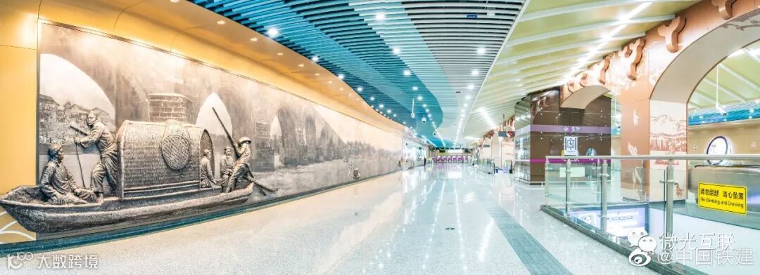 二江寺站:浮雕壁画展现成都南门码头文化、川西田园风光,让乘客瞬间穿越到老成都水乡。
