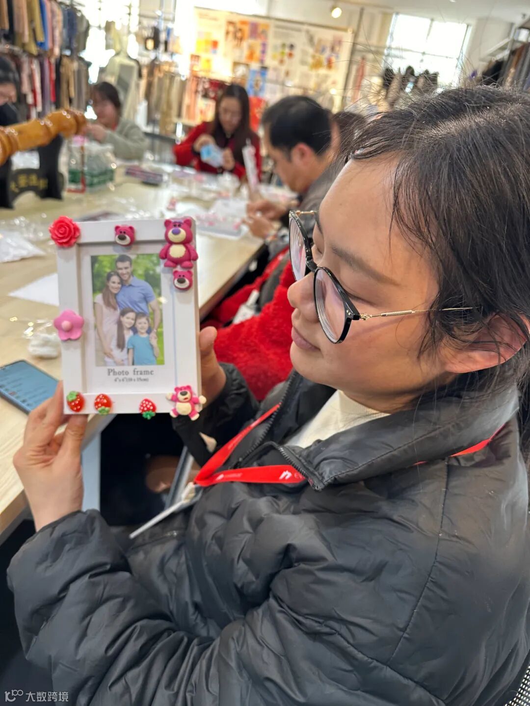 大家围坐在一起,对着相框、笔筒、镜子认真“创作”:有人挤着波浪纹奶油胶像模像样,有人把卡通贴片排成小故事,还有人混搭闪片和小配件,玩出了独家风格。最后举起亲手做的物件合影时,每个人脸上的笑容都像奶油胶一样甜乎乎——原来亲手创造的快乐,真的能暖透整个冬天。