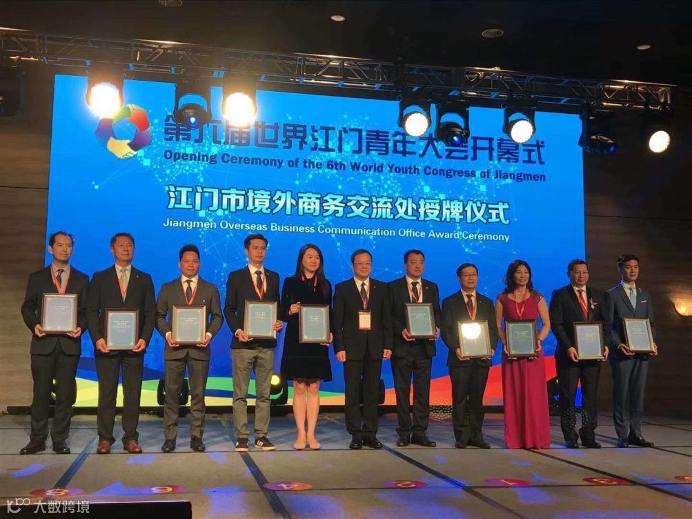 同期举行了江门市境外商务交流处授牌仪式,19个境外商务交流处分布在欧洲、北美、拉美、东南亚和大洋洲