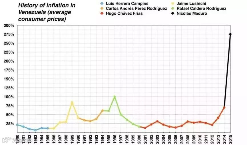 委内瑞拉目前面临1999年以来最严重的经济危机。据国际货币基金组织(IMF)预测,委内瑞拉通货膨胀率在2018年底将达到1000000%,直逼2009年津巴布韦币通胀率10000000000%。