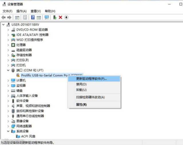 打开计算机里的设备管理器,找到端口选项并打开,右键点击更新驱动程序软件,如图所示,就可以了