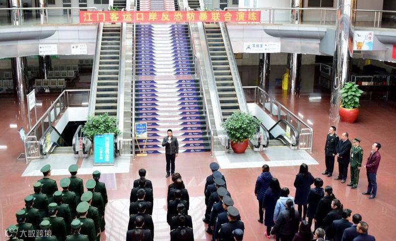 在元旦、春节等重要节点即将来临之际,为进一步强化我市口岸反恐安保综合能力,完善口岸应急联合处置和协作机制,确保旅客生命财产安全和口岸平安顺畅,12月12日上午,江门市口岸局组织口岸各有关单位在江门港客运口岸(港澳码头)举行反恐安保联合演练。驻口岸的海关、边检、海事、派出所和港澳客运公司等单位参加了演练。