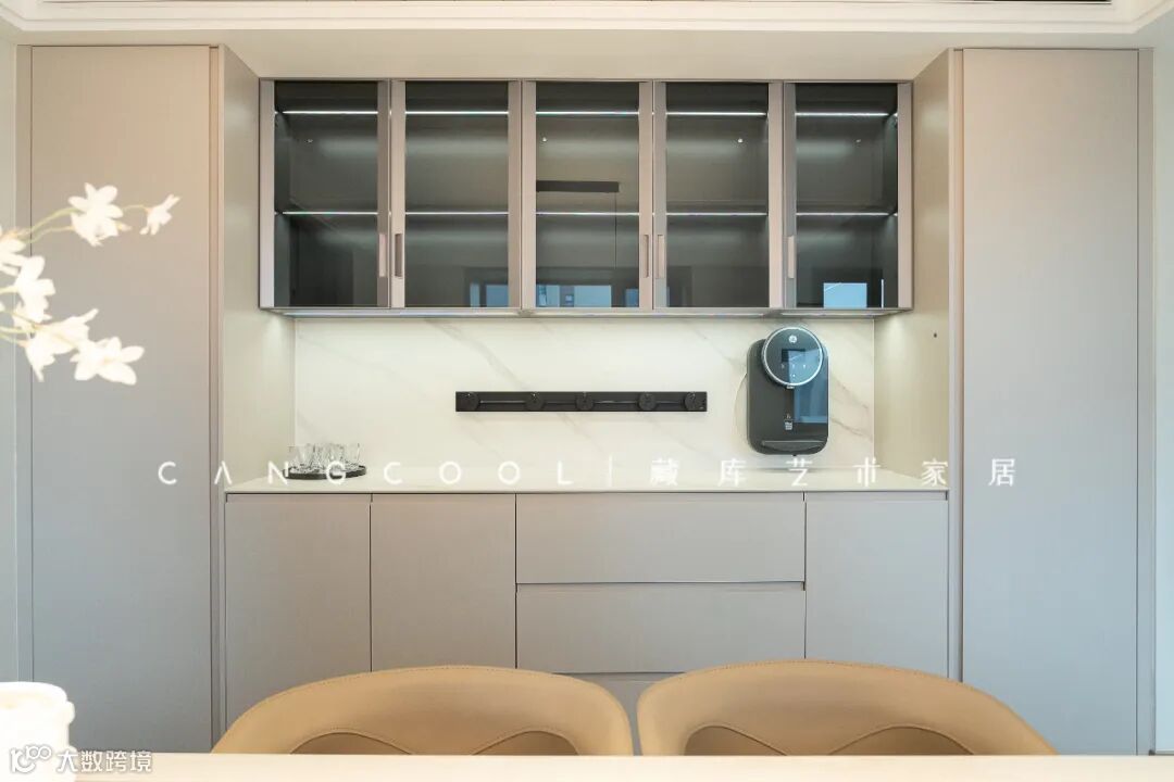 浅色系的轻柔静谧让人沉醉,生活的烟火气包裹其中。时尚潮流座椅打破空间色彩的平静,活络优雅的气息也不断跳跃。平静和热闹之间,完全掌握在居者的心情里。