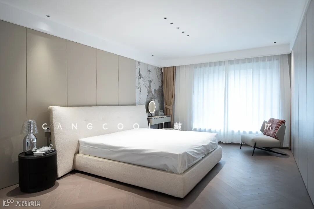 在卧室设计方面,首先要满足不同具者对于空间功能的基本要求。主卧室空间以视觉整齐,结构简单,看上去高级为主。卧室空间装饰细腻自然,浅色床头搭配素雅背景色,线条勾勒出层次感。空间瞬间散发出轻盈质感,让居住生活体验更加高级。