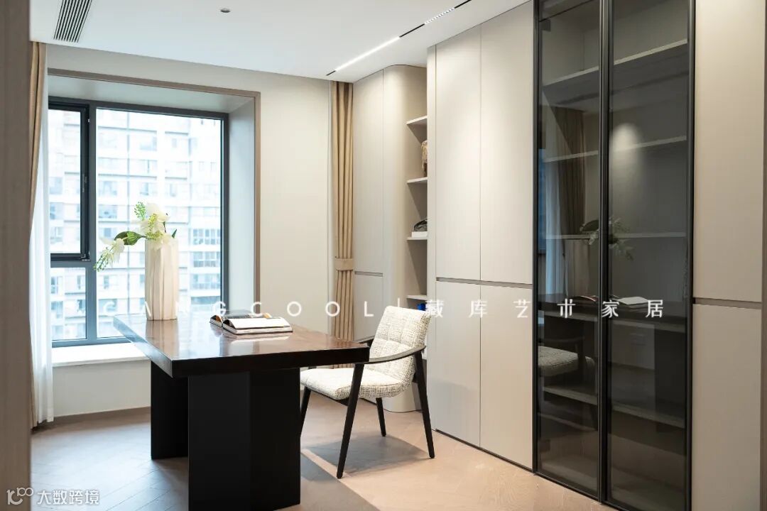 藏库设计师以时尚、年轻、生命力为主题,让阅读空间也优雅、精致,并充满生活情调。更是凭借着材质与设计的魅力将极简书房隐于繁华与朴实之中极致演绎,简约的氛围组合,利落的的柜体立面,创造出鲜亮的空间表现形式,让人就算是闲暇之余窝在书房里,也能仿佛从精神到肉体得到一次洗礼。