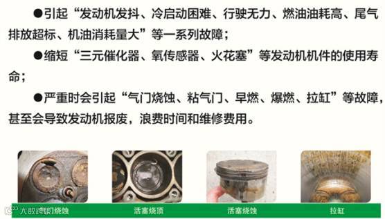 解决因积碳导至的行驶无力、加速不良、发闷、抖动、爆震等故障现象。