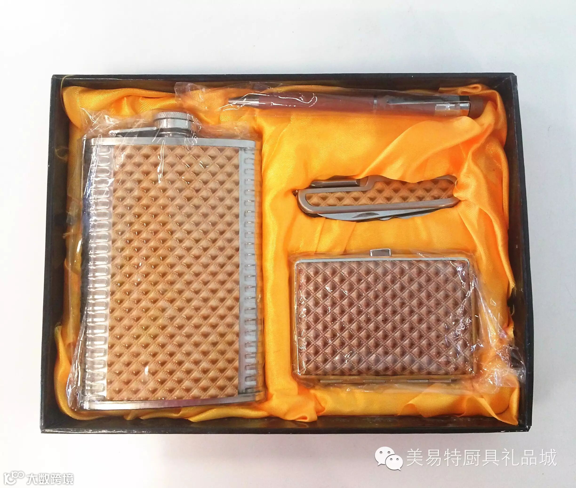 9oz假双钢+烟盒+刀+笔酒壶套装DK-4