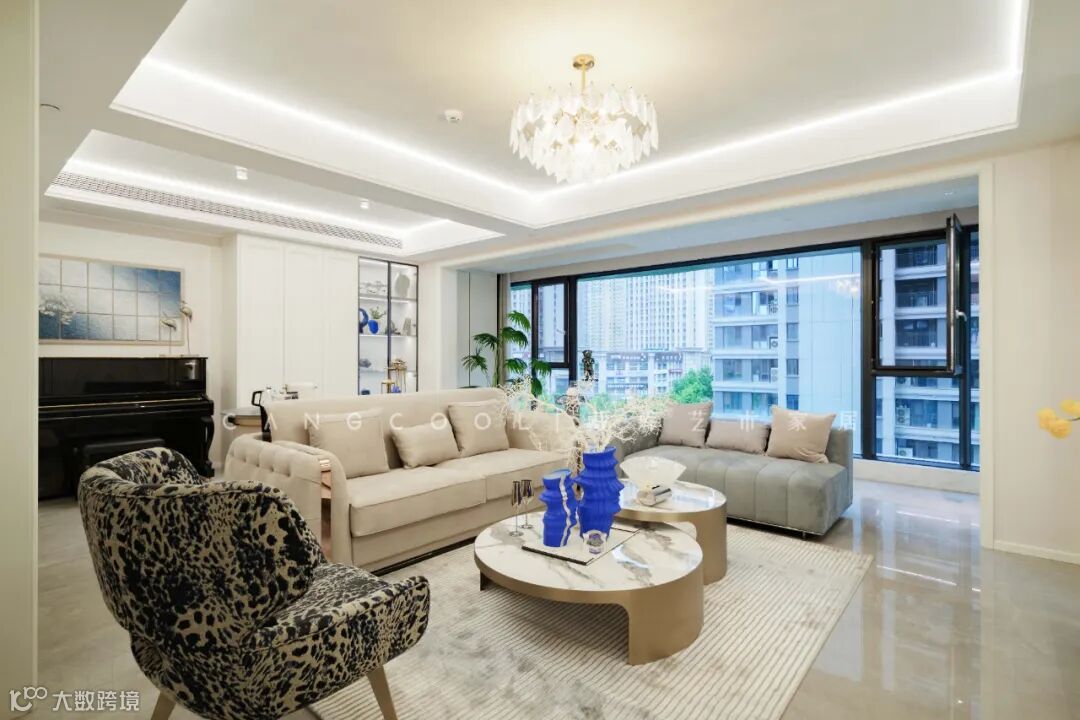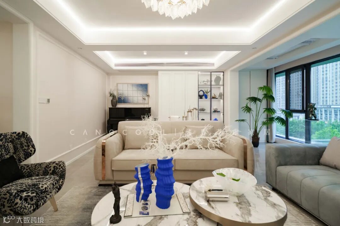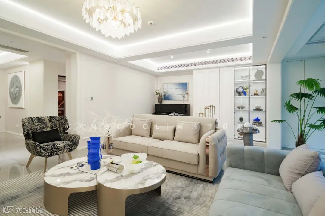 客厅在干净简洁的基础上采用金属和大理石的元素作为点缀。同时摒弃了过多的约束,摆脱沉闷的装修格局,开放现代的风格与时尚气息相融合。