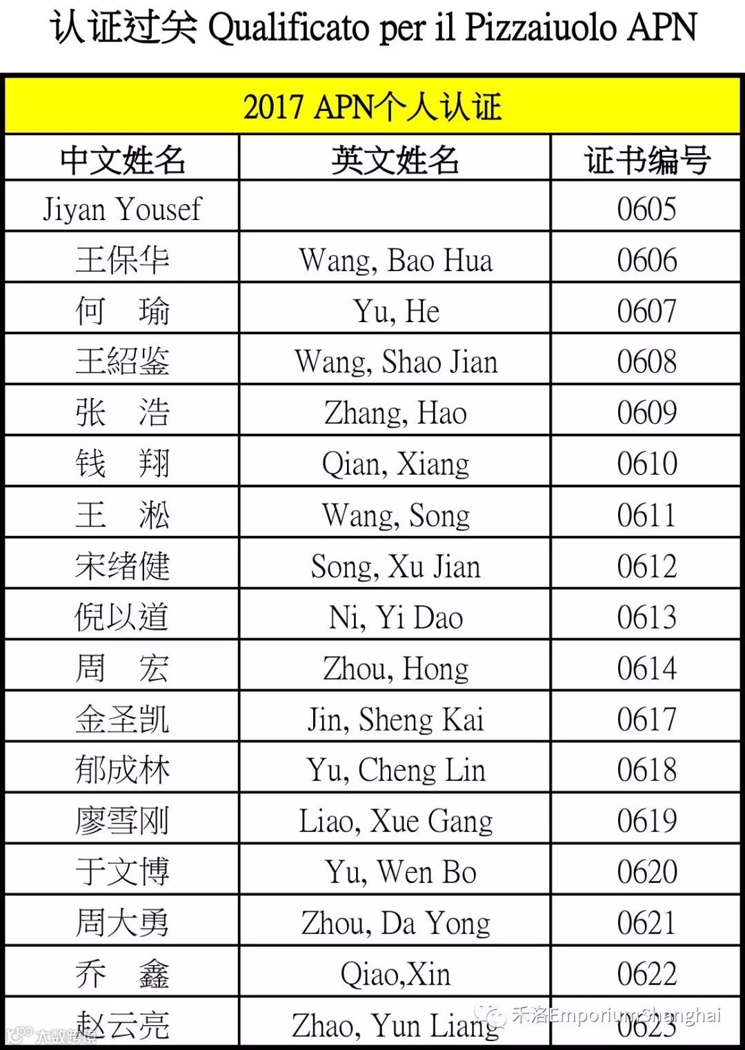 往后各位可以在禾洛公众号找到自己通过的纪录以及认证编号,我们会逐年更新,记得关注我们,禾洛会持续不定期公告意大利APN的披萨相关信息,参加意大利APN在全国举办的相关活动,共享拿坡里披萨料理的第一手资料!